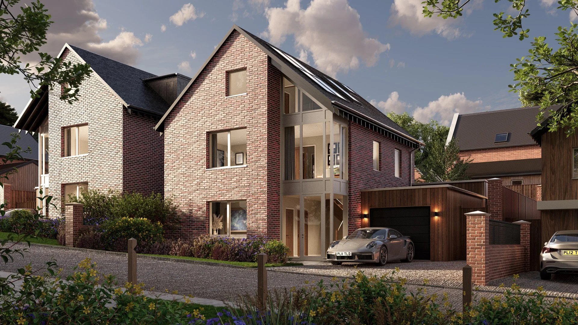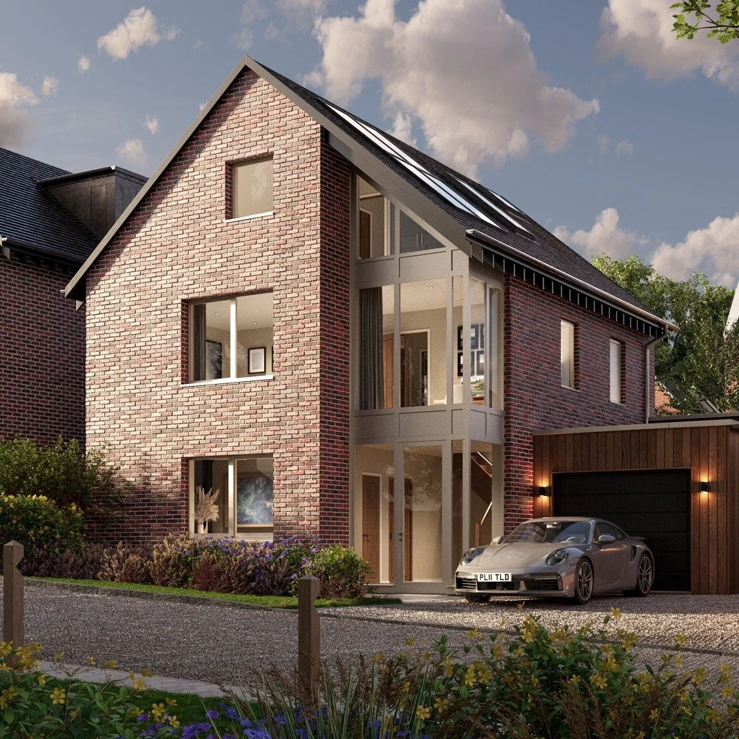 A luxurious detached home with impressive feature glazing overlooking mature woodland. Set over three floors