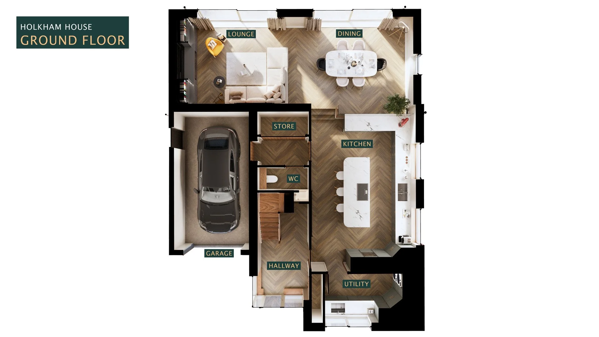 Conveniently situated off a dedicated hallway, this practical area offers easy access to the WC, ground floor storage, and the integrated garage—combining functionality smoothly into the home’s design.