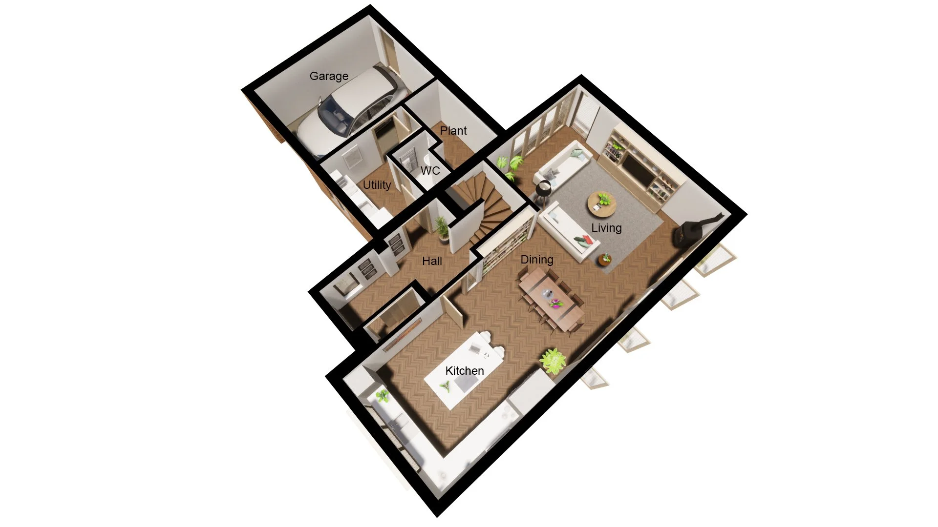 This generous open-plan living gives kitchen, diner and living area throughout the ground floor with access west and south on to the wrap-around garden.
