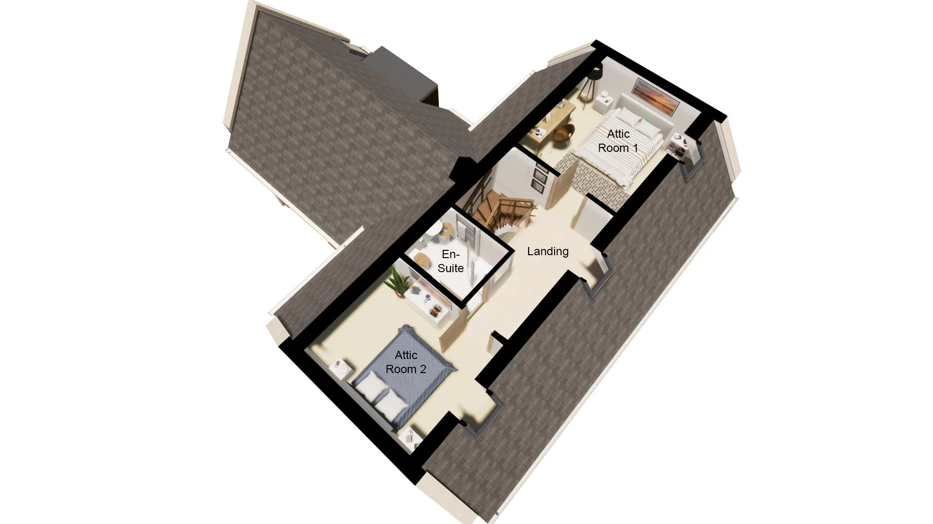Accessed via an additional staircase the third floor is made up of two additional (bed)rooms and a bathroom.
