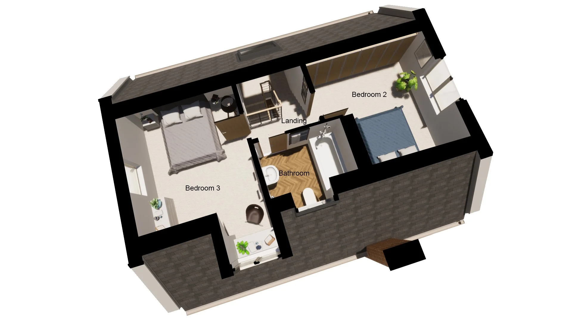 Large vaulted third bedroom with views south over the garden and woodland and impressive dormer window looking west.